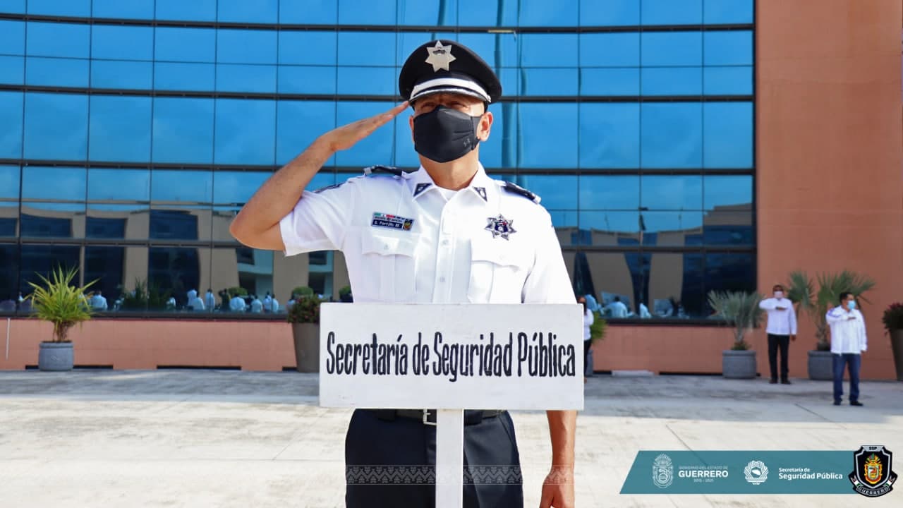 Participa el titular de la SSP Guerrero, David Portillo en los honores a la bandera que encabezó el Gobernador, Héctor Astudillo