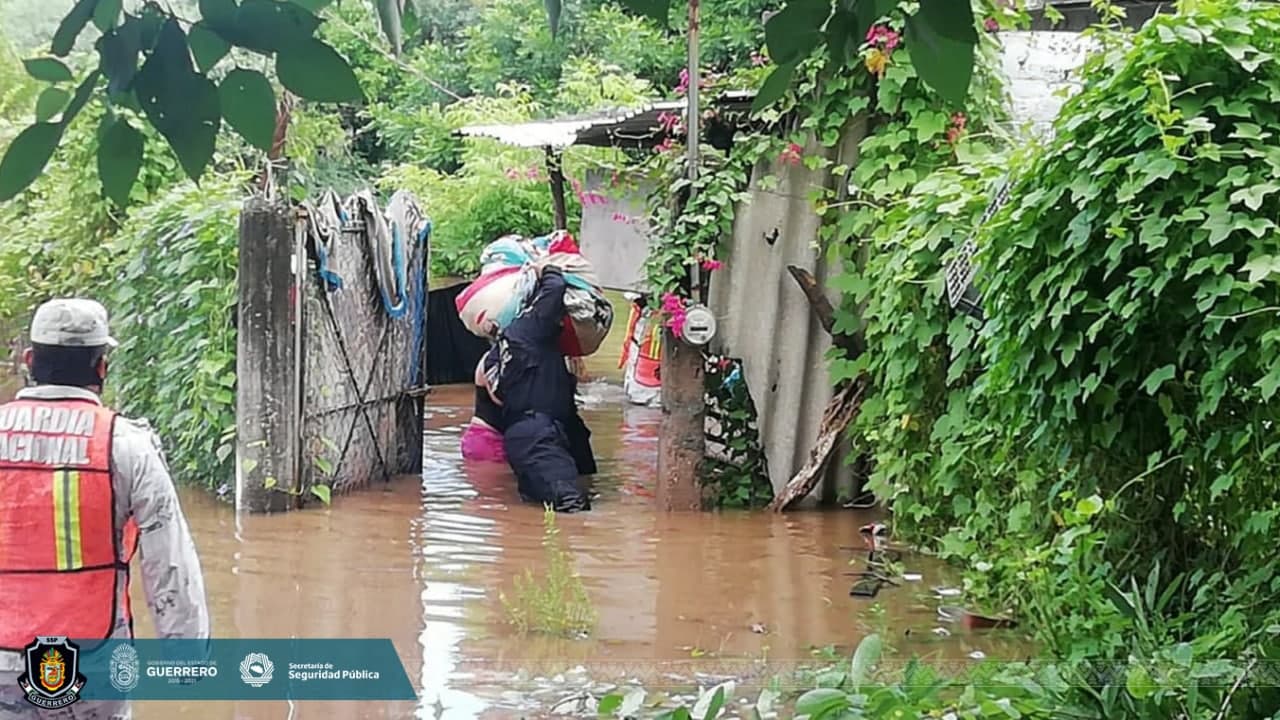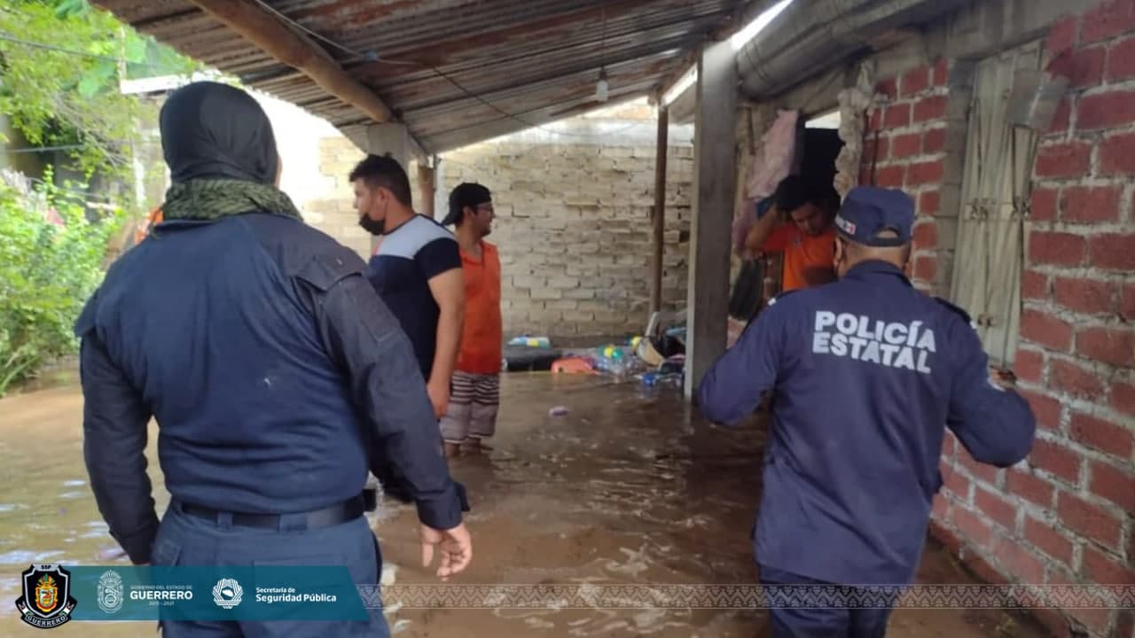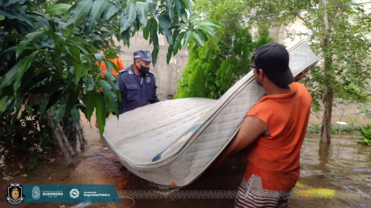 Los elementos de la Secretaría de Seguridad Pública Estatal, en coordinación con personal del Ejército Mexicano, Guardia Nacional y Protección Civil Guerrero, ayudaron a las personas a sacar de las viviendas sus pertenencias, como muebles y enseres domésticos.