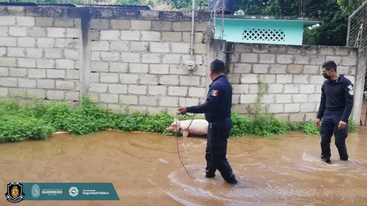 También apoyaron en el rescate de algunos animales de granja que tenían en las viviendas afectadas por la inundación.