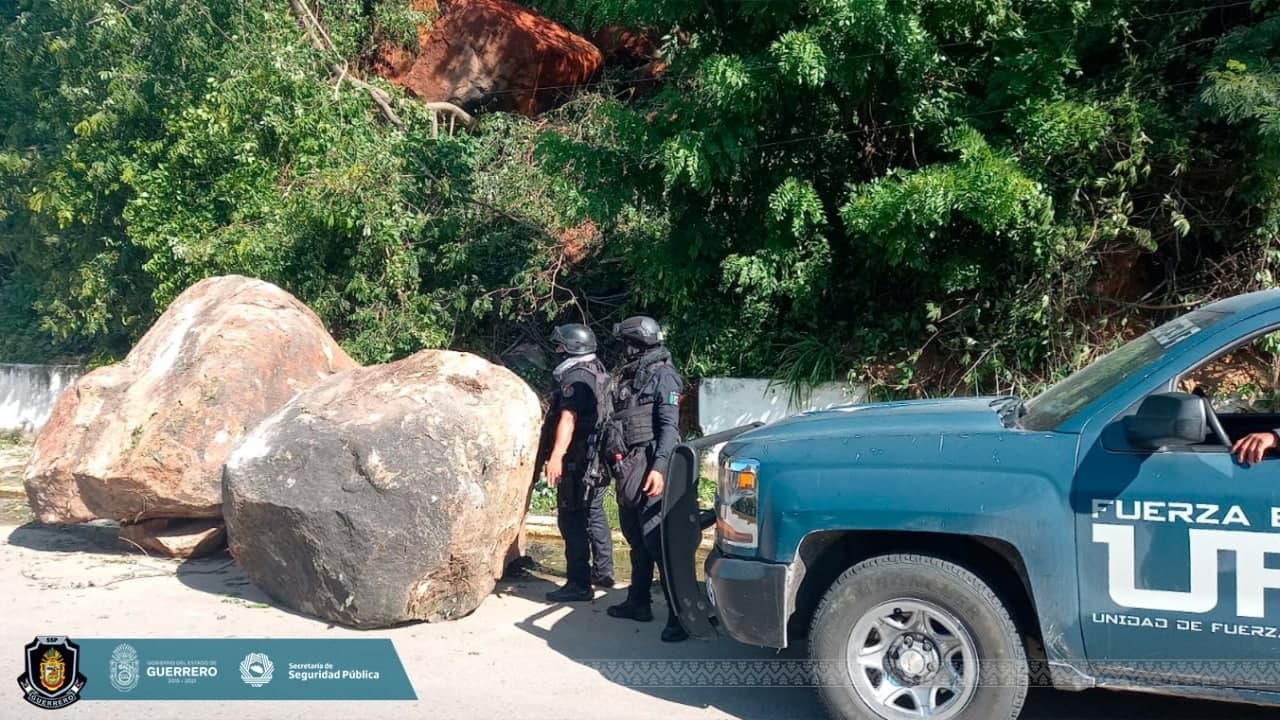El personal de la Dirección General de Tránsito Estatal también mantiene un dispositivo especial de apoyo vial sobre la avenida Escénica de Acapulco, zona donde se registraron derrumbes de tierra y rocas.