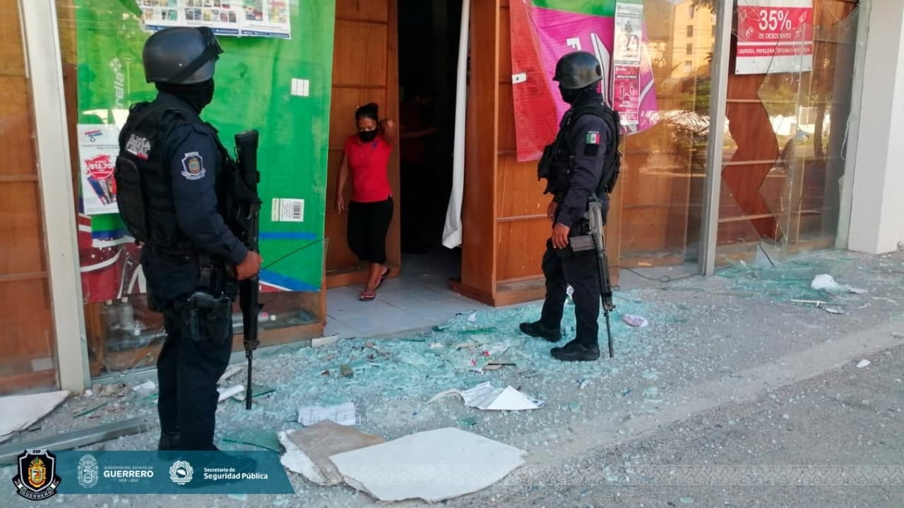 Los elementos de la SSP Guerrero también resguardan negocios y locales que sufrieron daños por el sismo, a fin de evitar saqueos.