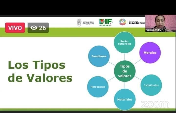 Chilpancingo, Guerrero, 09 de septiembre de 2021.- Con la participación y respaldo de la presidenta del Patronato DIF Guerrero, Mercedes Calvo de Astudillo, personal de la Dirección General de Prevención Social del Delito de la Secretaría de Seguridad Pública Estatal participó en el ciclo de conferencias virtuales del Programa Nacional de Prevención, enfocadas en esta ocasión a la niñez y juventud guerrerense.