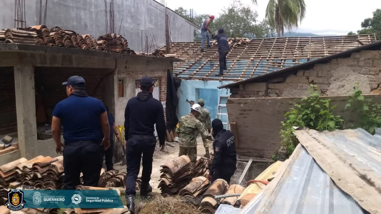 Los elementos, además de otorgar seguridad, apoyan a las personas con el retiro de escombros de las viviendas afectadas y la limpieza en esas dos localidades.