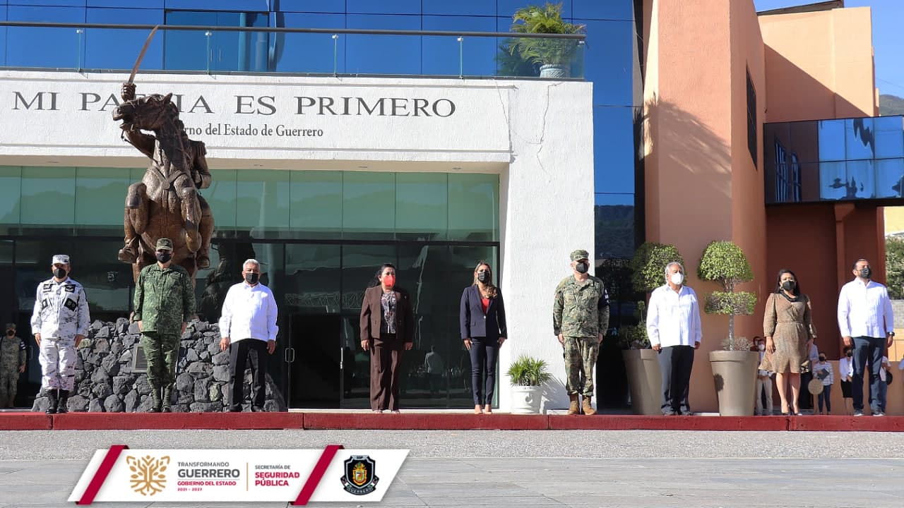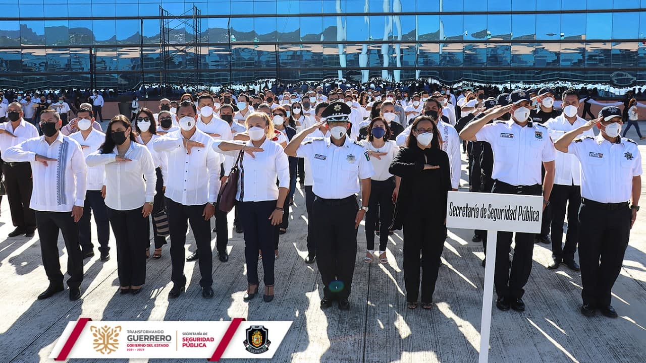 El Secretario de Seguridad Pública Estatal, Evelio Méndez Gómez participó en el homenaje a la Bandera Nacional correspondiente al mes de noviembre, que fue encabezado por la Gobernadora, Evelyn Salgado Pineda en la explanada del Recinto Oficial del Poder Ejecutivo.