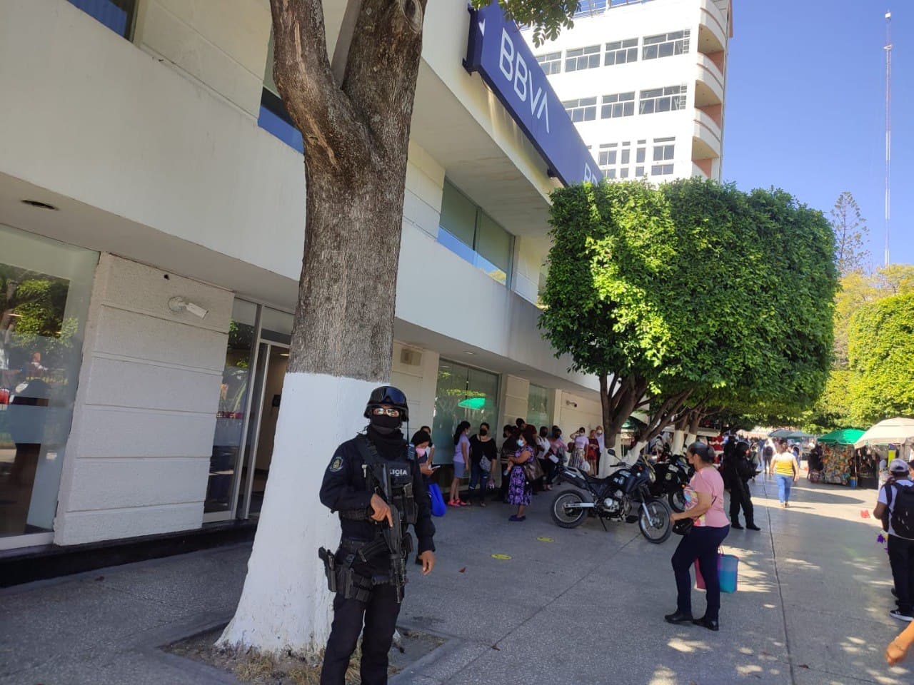 Refuerza la Policía Estatal seguridad en instituciones bancarias por el pago de aguinaldos