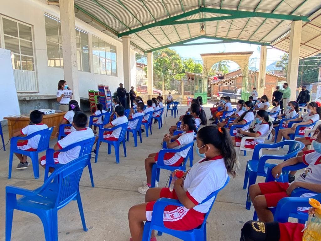 Chilpancingo, Guerrero, 18 de febrero de 2022.- La Secretaría de Seguridad Pública Estatal, a través de la Dirección General de Prevención Social del Delito, mantiene sus actividades para prevenir y atender la violencia de género en municipios de las regiones Costa Chica y Montaña, dando seguimiento a la estrategia estatal y nacional para erradicar la violencia contra las niñas, niños, adolescentes y mujeres.