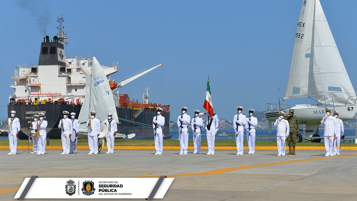 Acapulco, Guerrero, 21 de abril de 2022.- El secretario de Seguridad Pública Estatal, Capitán Evelio Méndez Gómez participó en la Ceremonia de Conmemoración del 108 Aniversario de la Gesta Heroica del puerto de Veracruz, que se llevó a cabo este jueves en la Octava Región Naval en el municipio de Acapulco de Juárez, y en la que participó la gobernadora, Evelyn Salgado Pineda como invitada de honor.