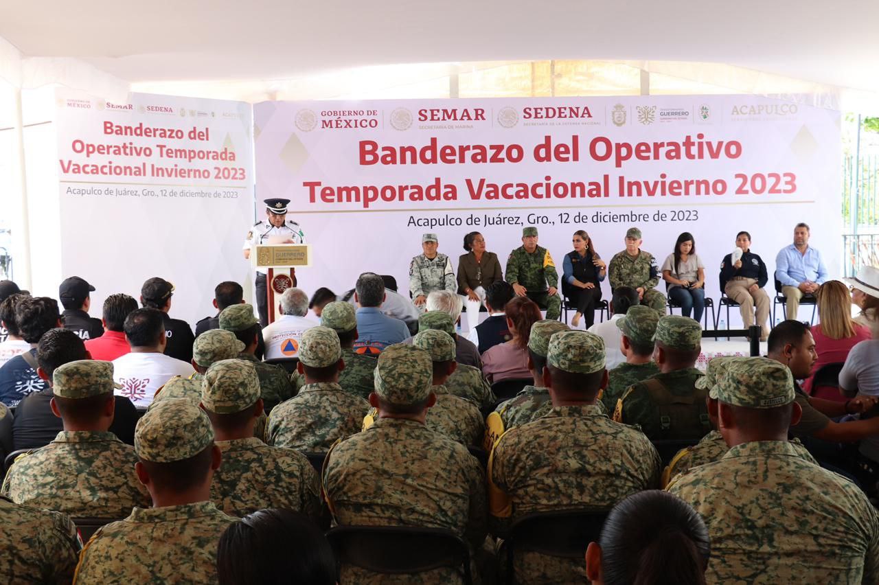 Acapulco, Guerrero, 12 de diciembre de 2023.- Con el objetivo de reforzar las acciones de prevención y de proximidad social en este periodo vacacional Invierno 2023, el personal de la Policía y Tránsito Estatal, así como de las Unidades Especiales, dan inicio al despliegue de atención a residentes y visitantes en todas las regiones de Guerrero.