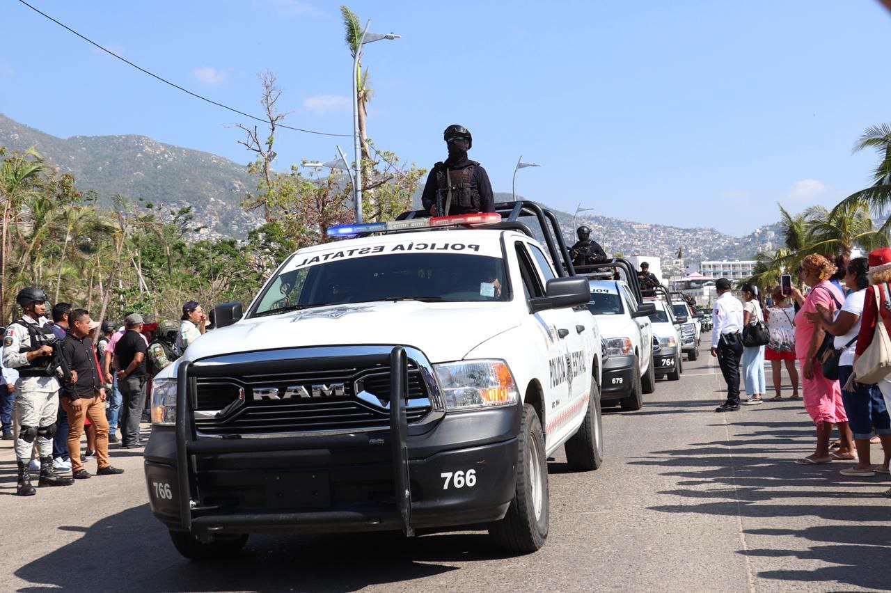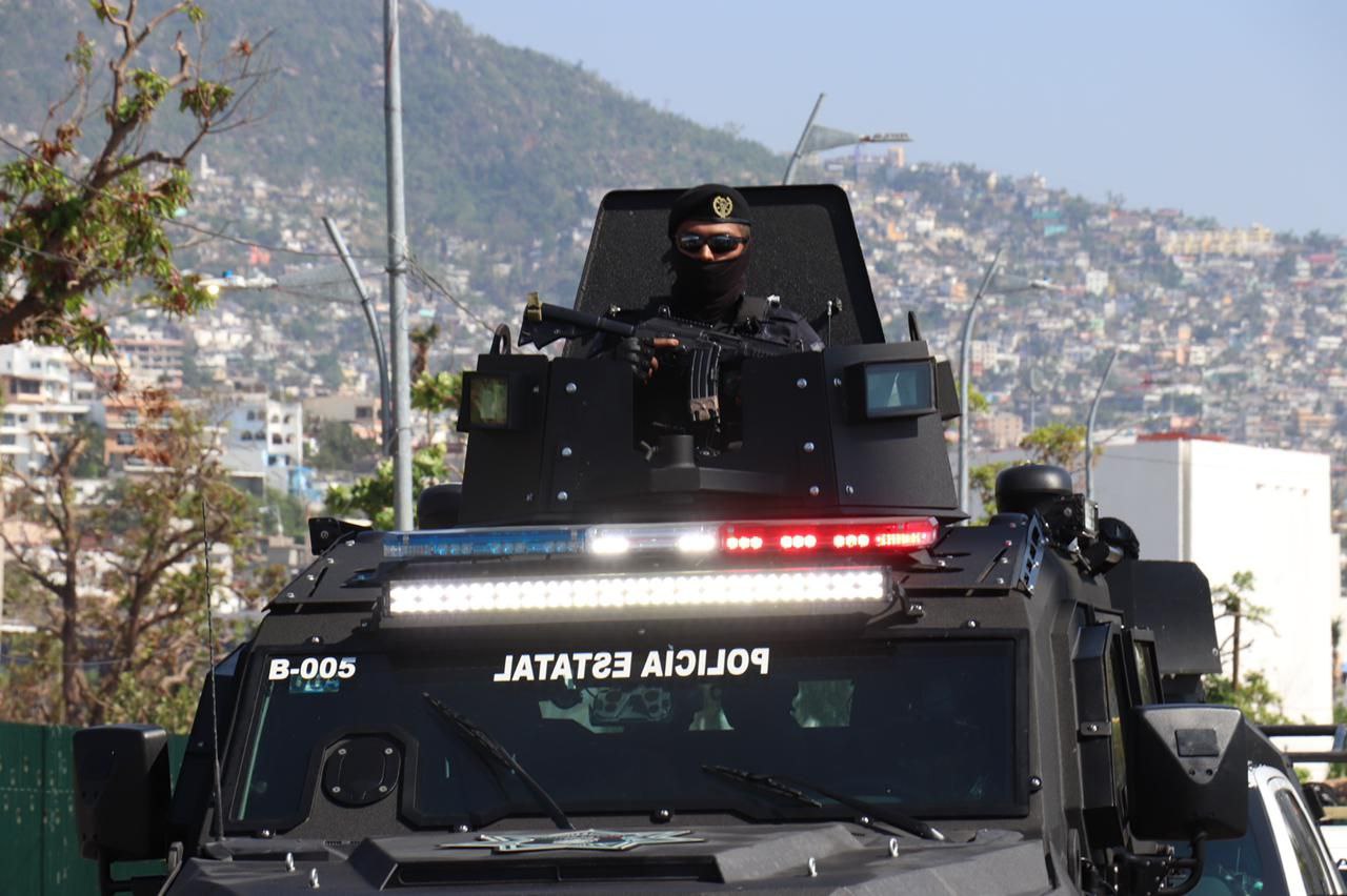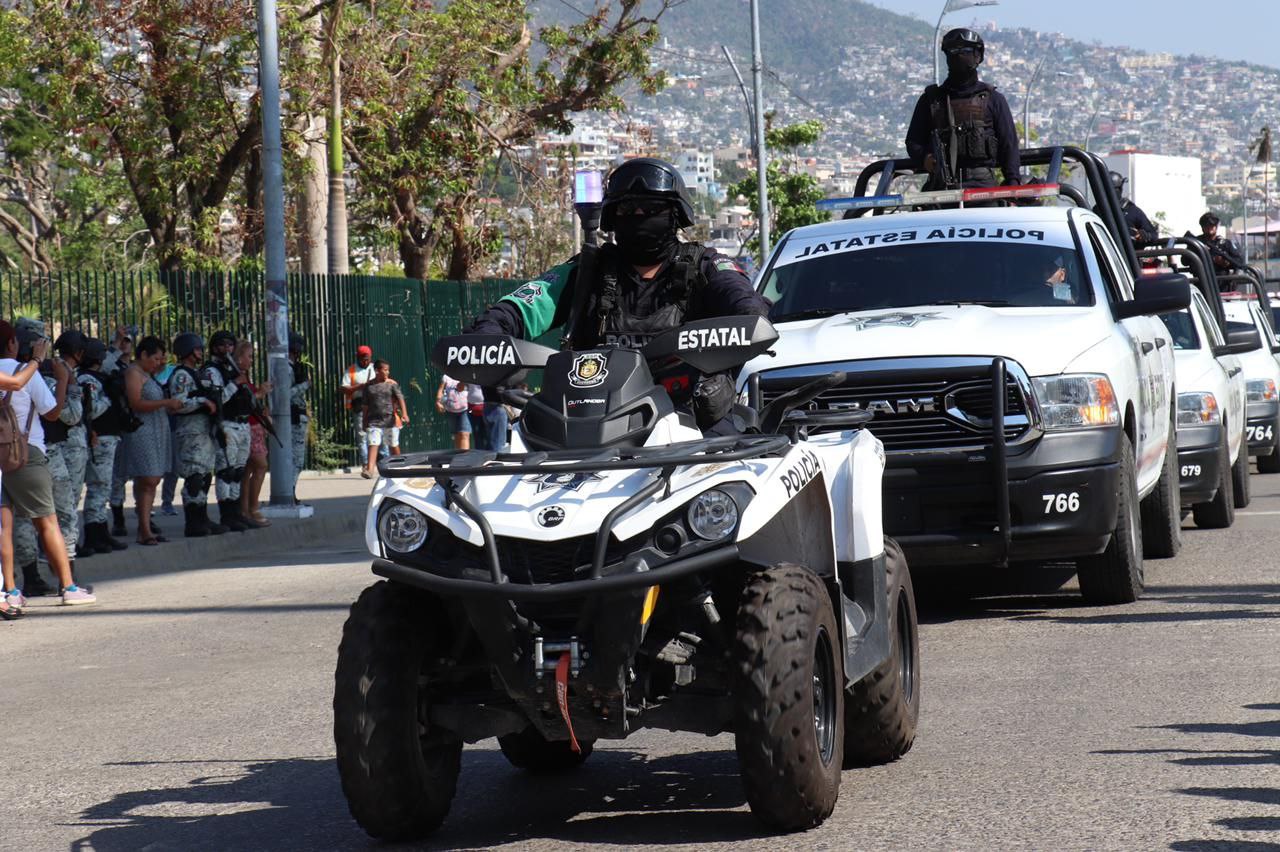 Respecto a la SSP Guerrero, participan más de 640 elementos con apoyo de 149 patrullas, 47 motopatrullas, vehículos blindados, seis binomios caninos y un helicóptero de la Unidad Aeromóvil para sobrevuelos de prevención. Todo esto en estrecha coordinación con autoridades federales y locales.