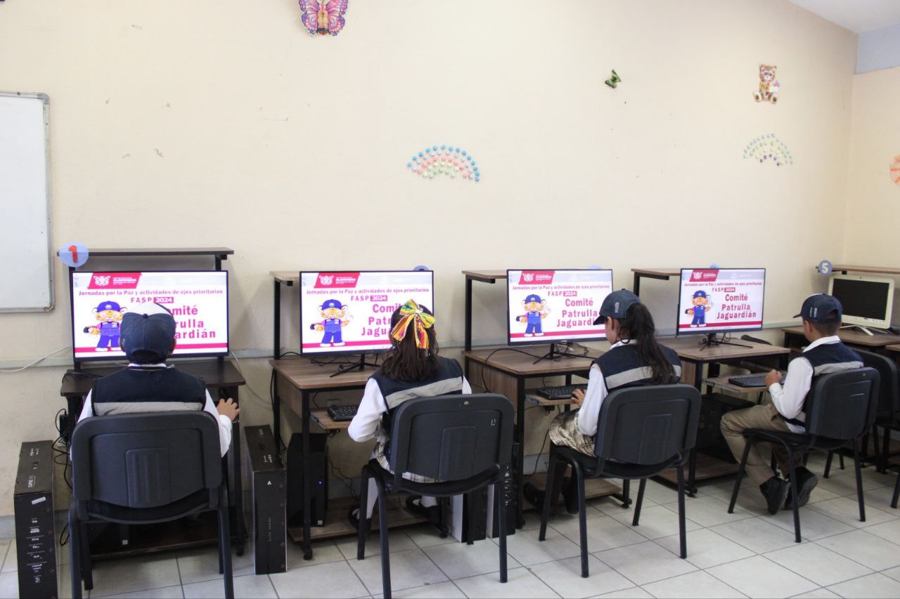 Chilpancingo, Guerrero, 14 de octubre de 2024.- Como parte de la estrategia para construir espacios escolares en donde se promuevan acciones de paz y de atención a la niñez y la adolescencia, la Secretaría de Seguridad Pública de Guerrero llevó a cabo la donación de equipos de cómputo en la escuela Partido Revolucionario Institucional, ubicado en la colonia del PRI, en el municipio de Chilpancingo.