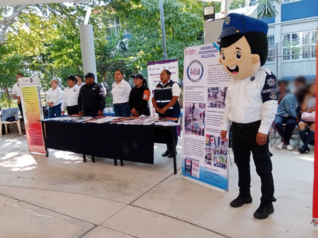 El personal de Prevención Social del Delito, Unidad de Género, Unidad Policial de Género y de la Unidad de Proximidad Policial instalaron un módulo para brindar recomendaciones para evitar ser víctimas del delito.