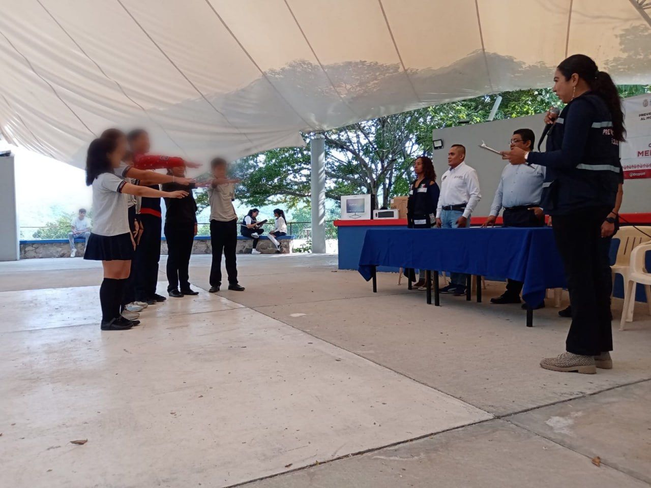 Chilpancingo, Guerrero; 16 de octubre de 2024.- Como parte de las estrategias para fomentar espacios seguros en las escuelas, la Secretaría de Seguridad Pública Estatal, a través de la Dirección General de Prevención Social del Delito llevó el programa Jornadas de Prevención por la Paz a la Escuela Preparatoria No. 36, del municipio de Eduardo Neri, en la región Centro de Guerrero.