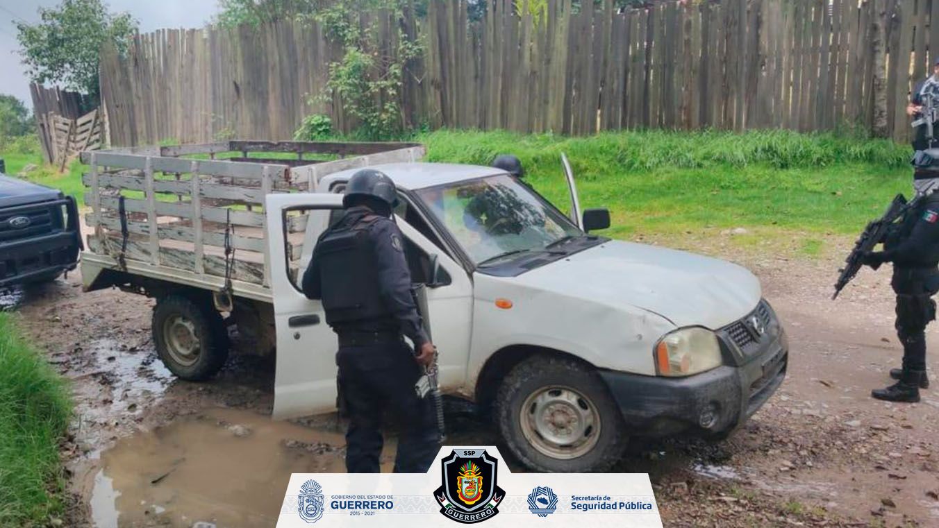 El aseguramiento de la camioneta, tipo Pick Up con caja de redilas, se dio sobre el tramo carretero Carrizal-Tepozonalco, a la altura del punto conocido como El Aserradero.