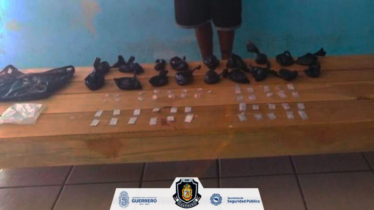 Asegura Policía Estatal a masculino con 65 bolsitas de presunta droga en Acapulco