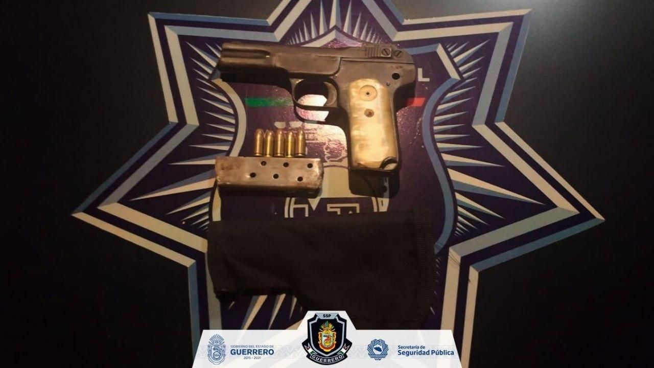 Chilpancingo, Guerrero, 01 de octubre de 2020.- Policías Estatales aseguraron a un masculino en posesión de un arma de fuego, un cargador y cinco cartuchos útiles en el municipio de Florencio Villareal.