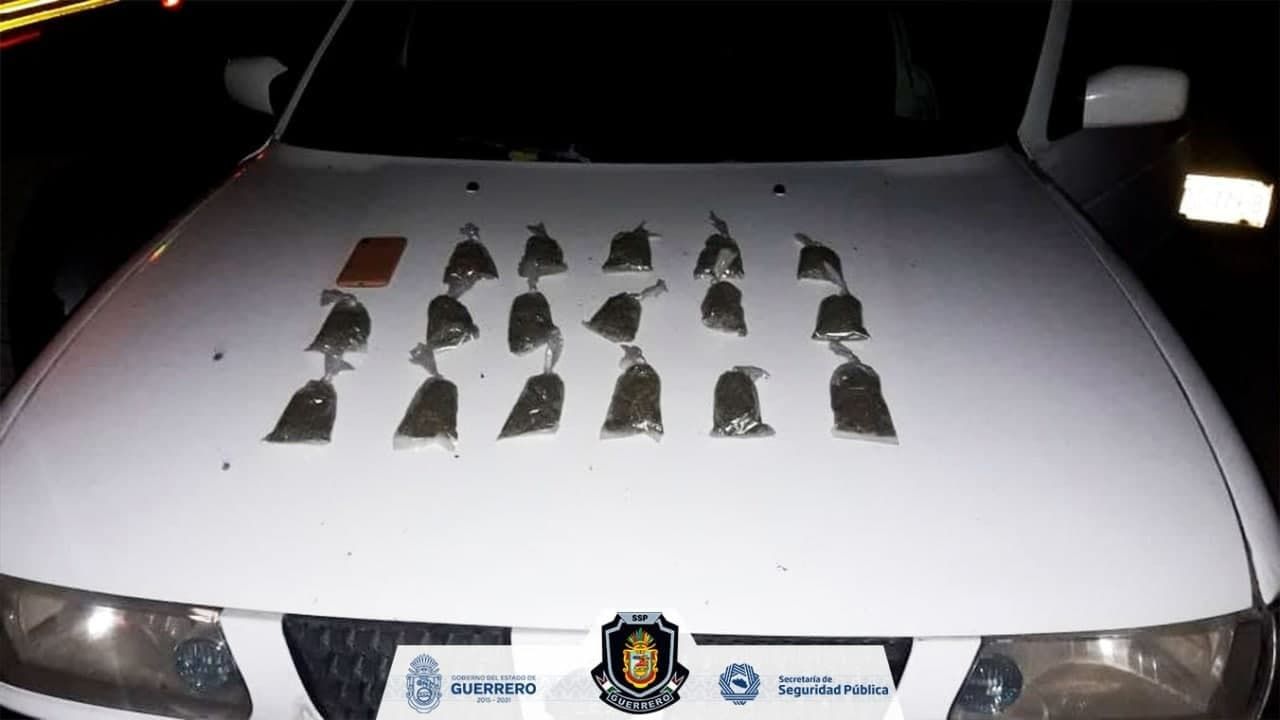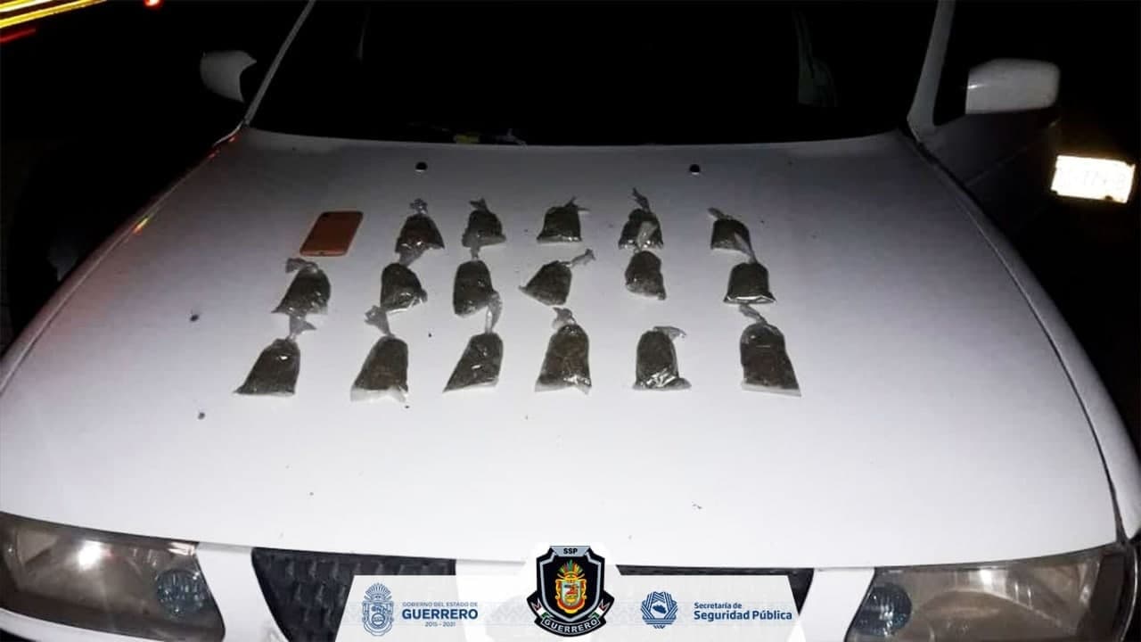 Al inspeccionar el asiento trasero del automóvil, los policías encontraron 17 bolsitas de plástico transparente con hierba verde con las características propias de la marihuana. Además, los elementos aseguraron un teléfono celular de la marca Huawei.