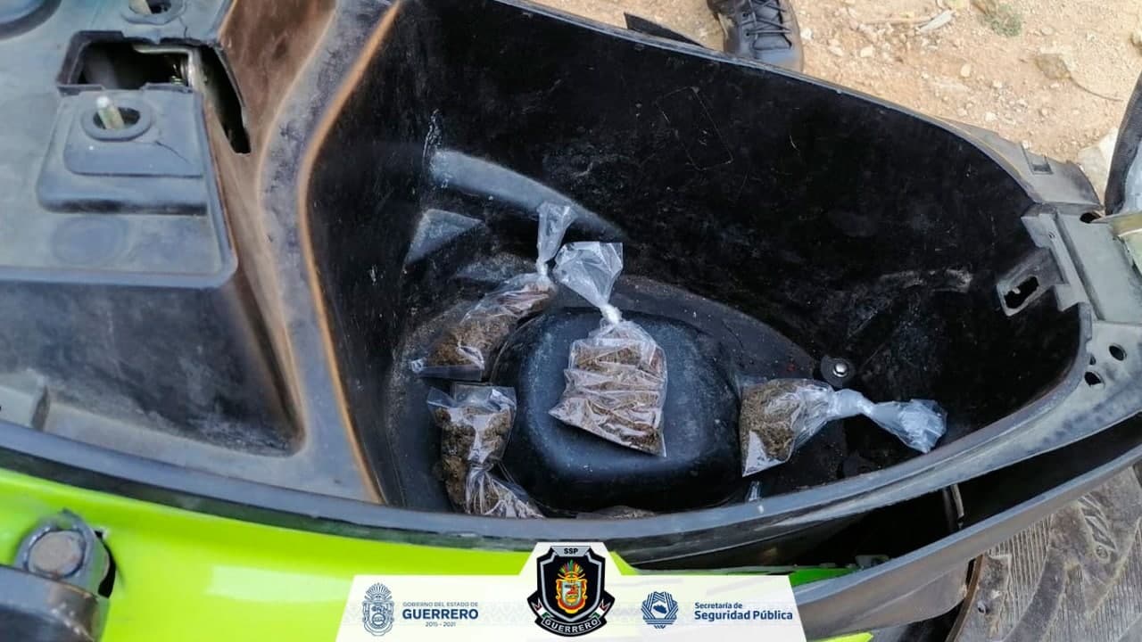 Asegura la Policía Estatal una motocicleta con probable droga en el municipio de Acapulco