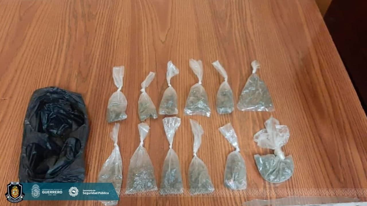 El hecho ocurrió en la colonia 24 de Febrero, y la persona fue identificada como Edson “N”, quien tenía en su poder 12 bolsitas de plástico con hierba verde, características de la marihuana.