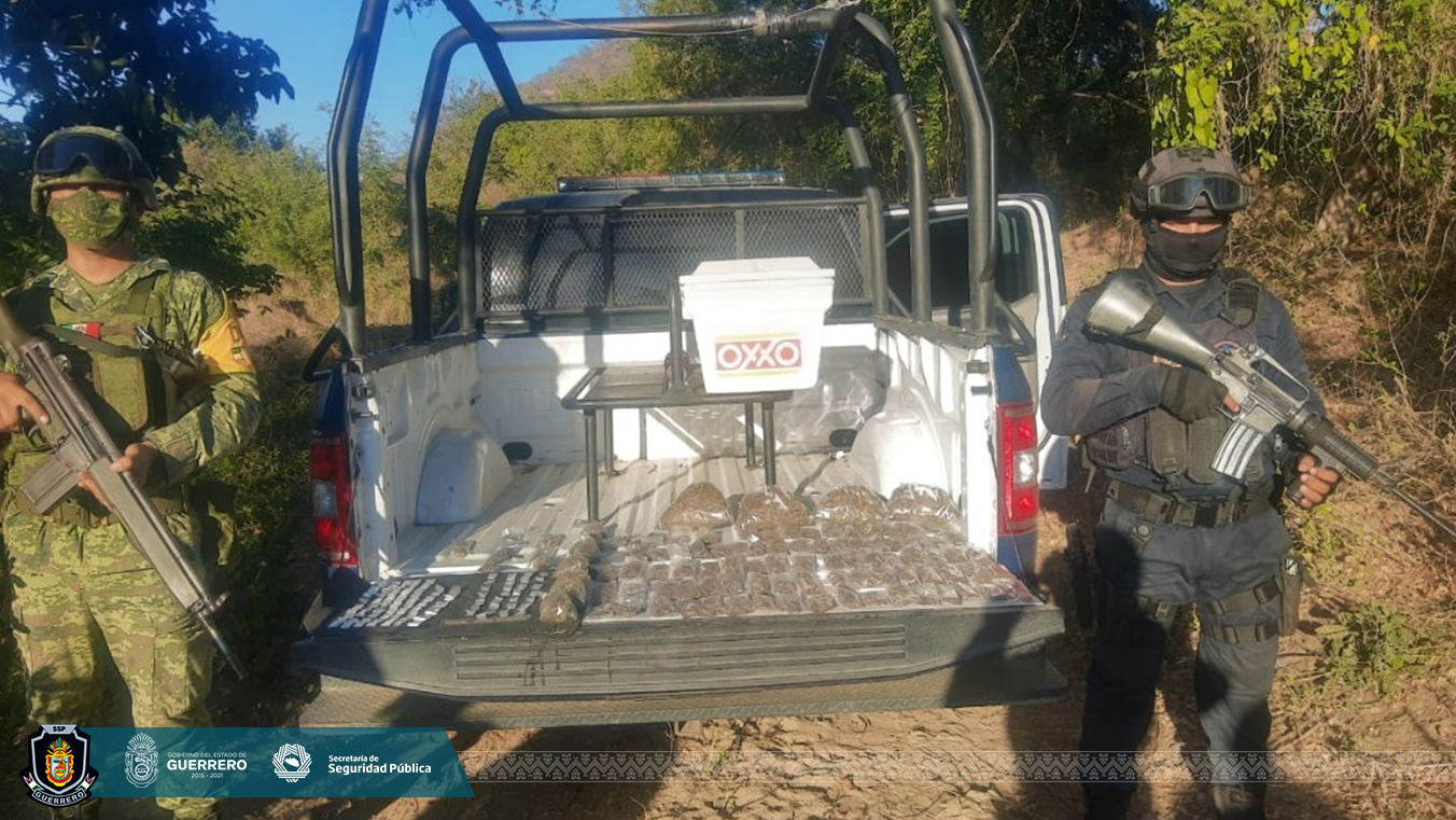 Asegura la Policía Estatal y SEDENA presunta droga en Acapulco