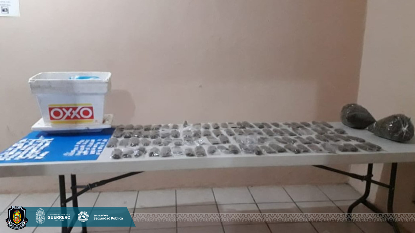 Chilpancingo, Guerrero, 15 de febrero de 2021.- Como resultado de acciones coordinadas en materia de seguridad en el municipio de Acapulco, elementos de la Policía Estatal y de la Secretaría de la Defensa Nacional aseguraron presunta droga.