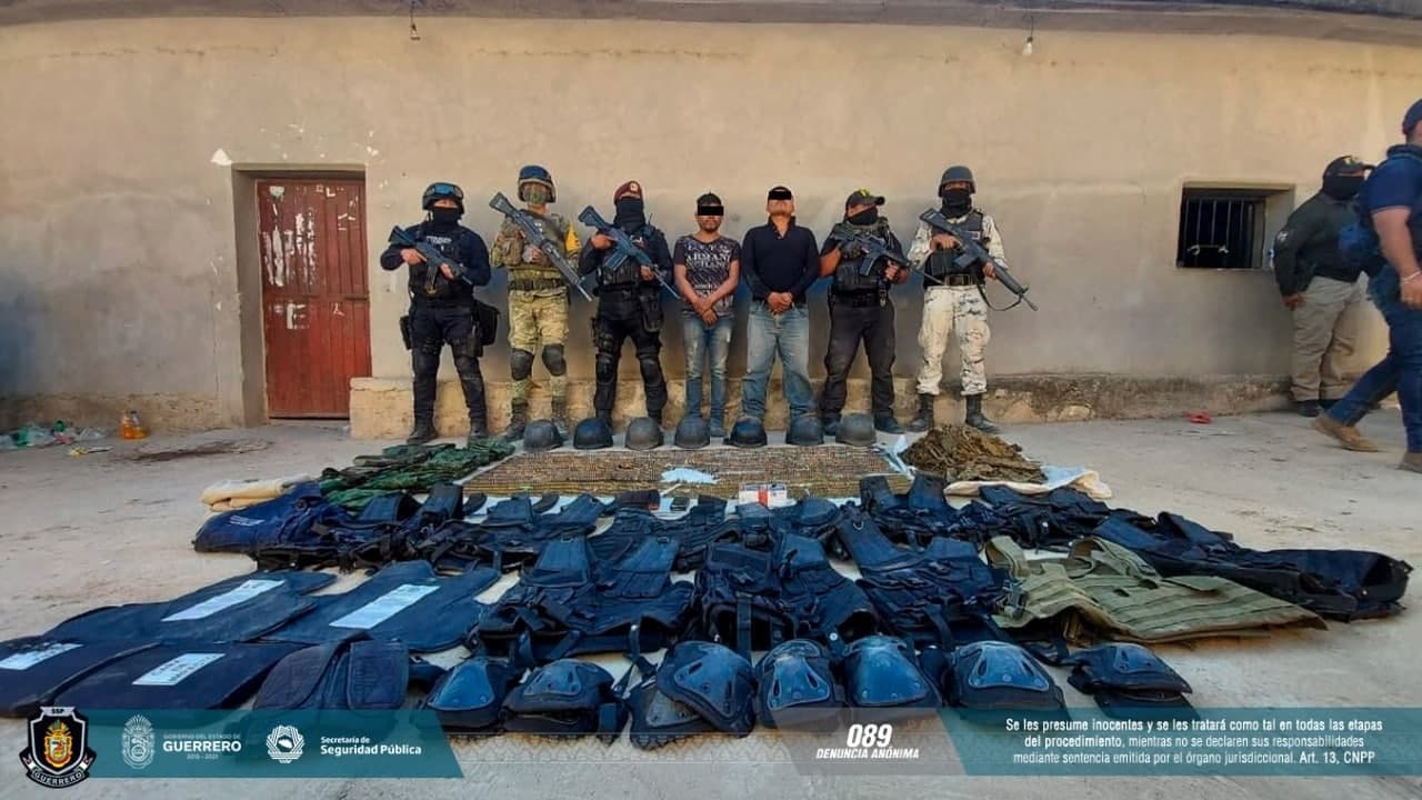 Asegura Grupo “Jaguar”, Policía Estatal, SEDENA, GN y FGE a dos personas con presunta droga, cartuchos y equipo táctico en Huitzuco