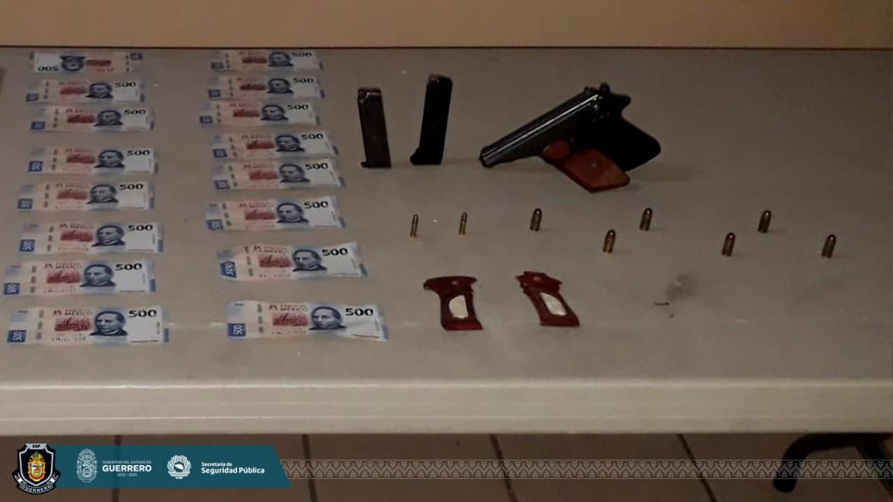Detiene la Policía Estatal, SEDENA y la Investigadora Ministerial a un hombre con un arma, cartuchos y dinero en efectivo en Acapulco