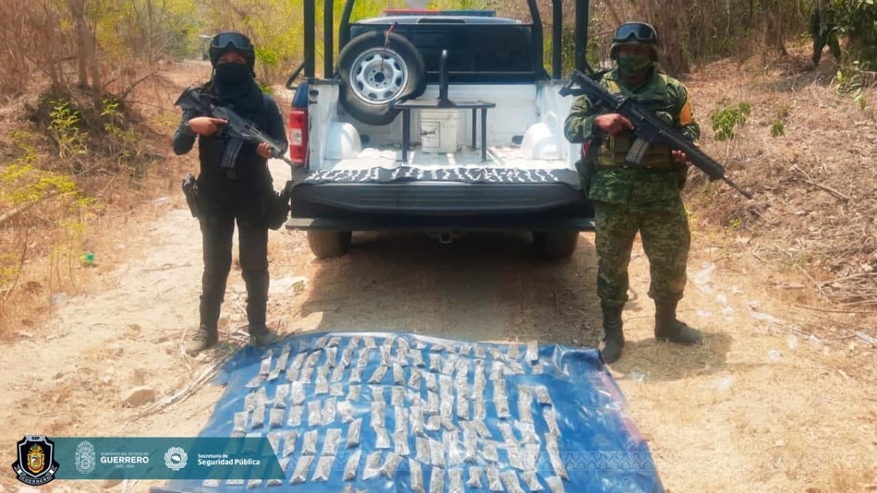 Aseguran Policía Estatal y SEDENA presunta droga en el municipio de Acapulco de Juárez