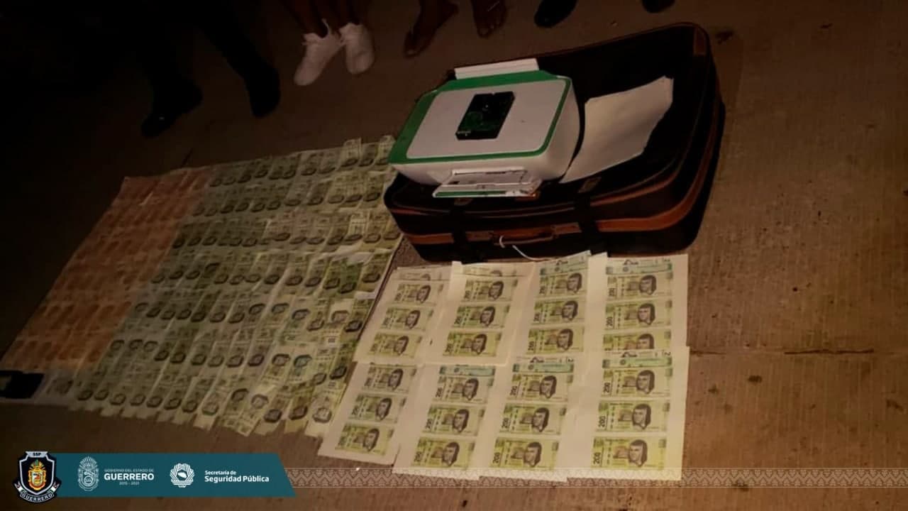 Chilpancingo, Guerrero, 25 de mayo de 2021.- Como resultado de las acciones de seguridad y prevención del delito en el municipio de Zihuatanejo de Azueta, elementos de la Policía Estatal y del Grupo de Operaciones Especiales “Jaguar” lograron detener a dos personas en posesión de presunta droga, billetes falsos de distintas denominaciones, una impresora y cartuchos de tinta.