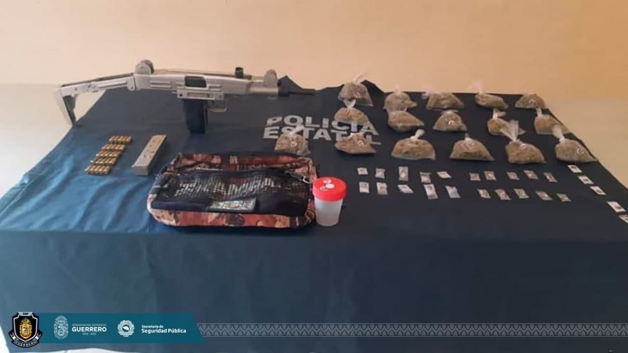 Asegura Grupo Táctico “Centauro” de la Policía Estatal presunta droga, cartuchos y un arma de fuego en el municipio de Acapulco