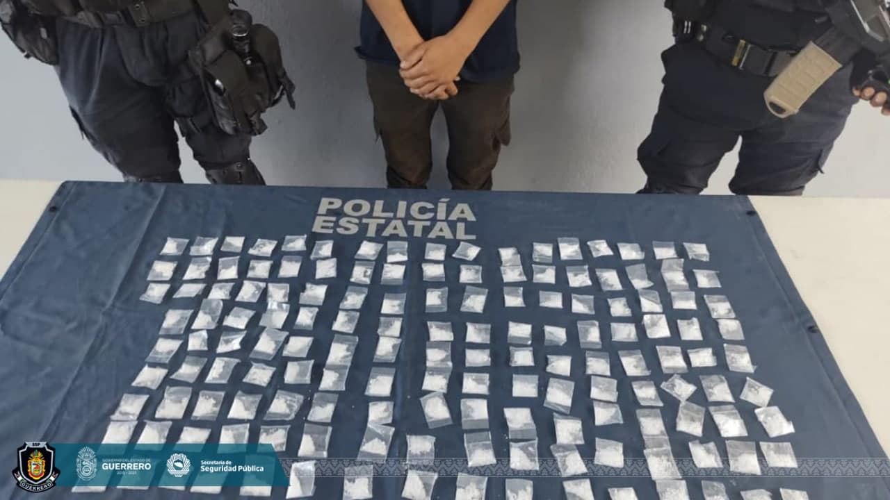 Chilpancingo, Guerrero, 29 de julio de 2021.- En recorridos de vigilancia y prevención del delito, elementos del Grupo de Operaciones Especiales “Jaguar” de la Policía Estatal detuvieron a una persona en posesión de dosis de presunta droga en la ciudad de Iguala.