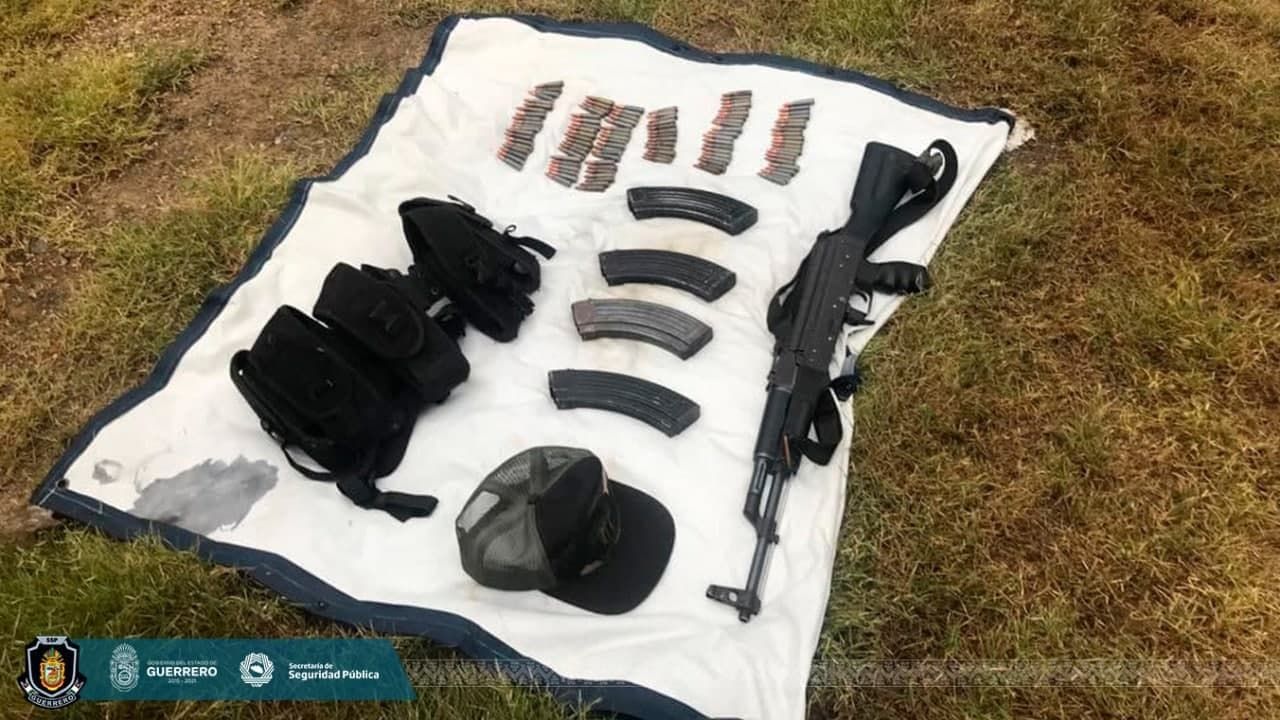 Los agentes realizan acciones coordinadas de seguridad y prevención del delito sobre la carretera federal Acapulco-Zihuatanejo, a la altura de la comunidad de Coyuquilla Norte, donde ubicaron el siguiente armamento: