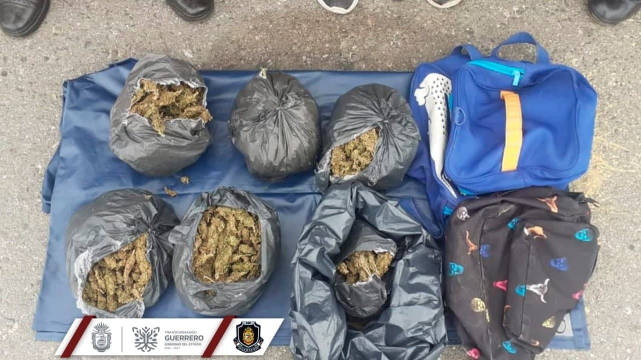 El vehículo del transporte público, con número económico 0035 de la ruta Petatlán-Papanoa, los dos hombres y la presunta droga fueron puestos a disposición de las autoridades correspondientes.