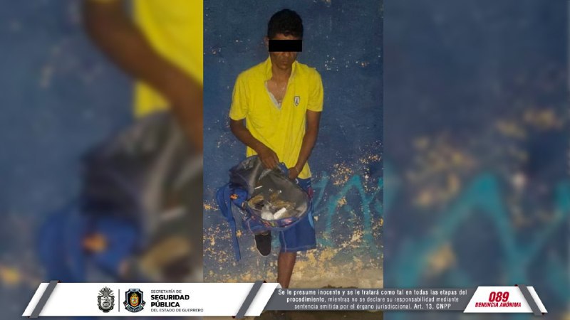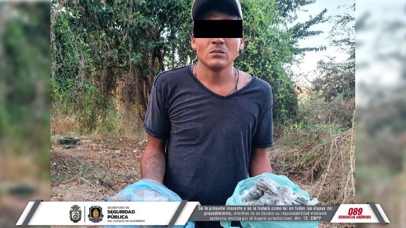 Chilpancingo, Guerrero, 16 de marzo de 2022.- Personal de la Policía Estatal de la Secretaría de Seguridad Pública Guerrero detuvieron en tres distintos hechos a cuatro personas en posesión de presunta droga en el municipio de Acapulco.