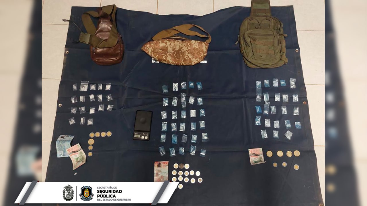 A quienes, tras una inspección, se les localizó en posesión de 71 dosis de una sustancia sólida y cristalina, con características la droga conocida como cristal y 258 pesos en efectivo.