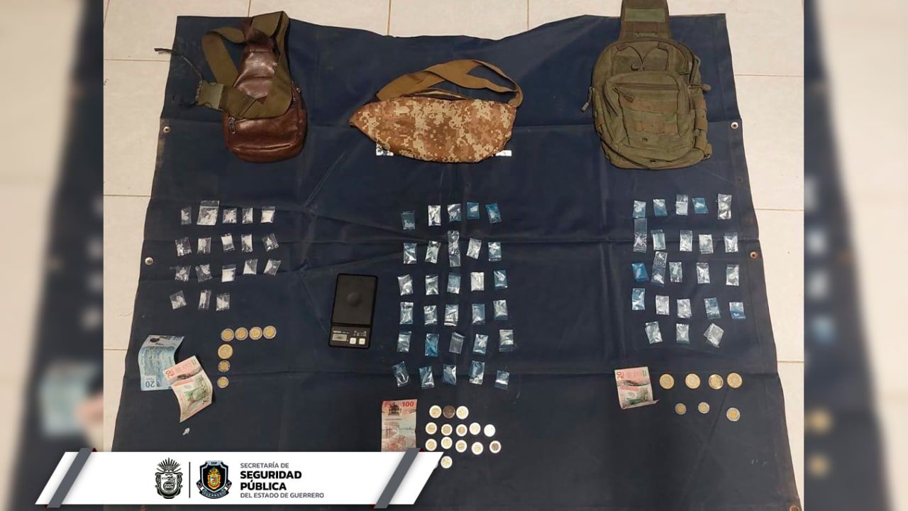 Chilpancingo, Guerrero, 02 de diciembre de 2022.- En acciones de seguridad y prevención del delito, personal de la Policía Estatal detuvo a tres personas en posesión de presunta droga en el municipio de Cuajinicuilapa, en la región de la Costa Chica.