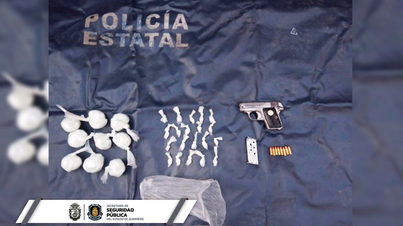Tras una inspección se le localizó un arma de fuego corta, un cargador metálico y ocho cartuchos. Así como 21 dosis de una sustancia sólida y cristalina, similar a la droga conocida como cristal.