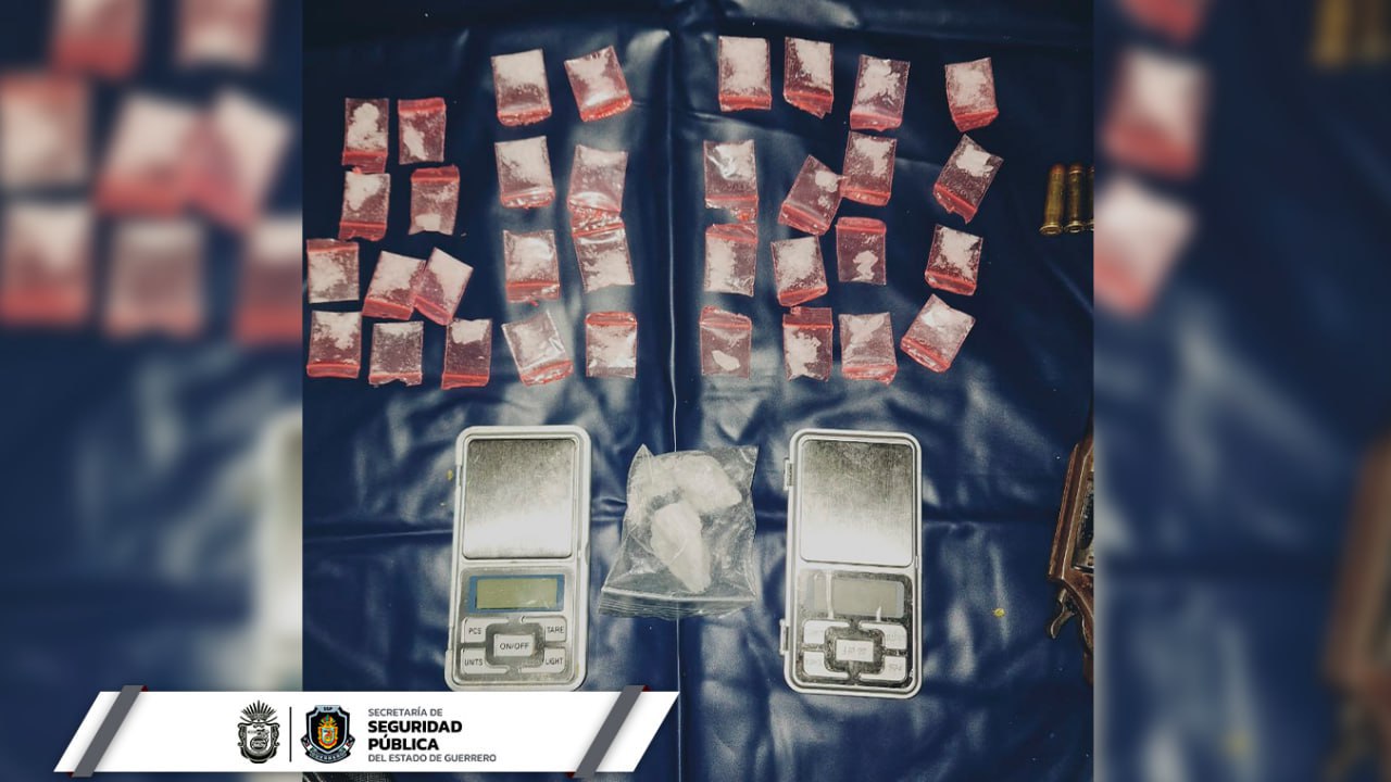 • Se les aseguró presunta droga, cartuchos y dos armas de fuego