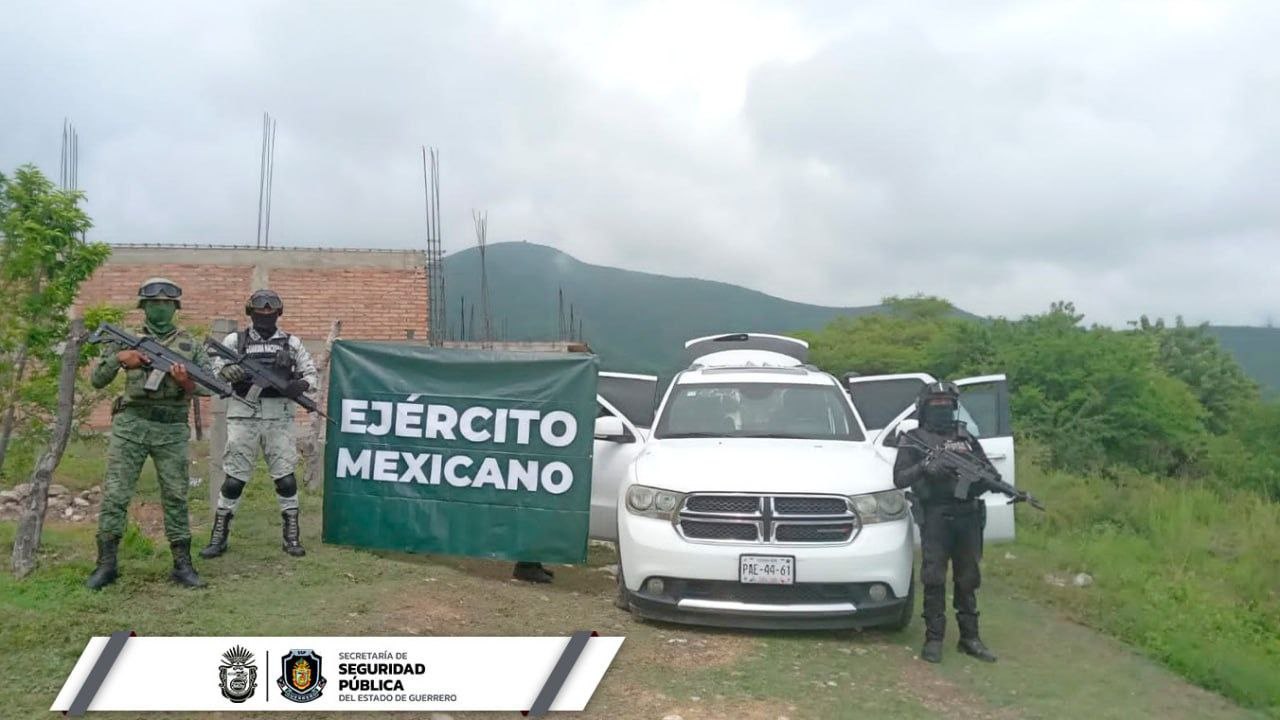 Chilpancingo, Guerrero, 28 de agosto de 2023.- Como resultado de las acciones conjuntas en la localidad de Chichihualco, municipio de Leonardo Bravo, personal de la Policía Estatal, en coordinación con el Ejército Mexicano y Guardia Nacional, aseguraron armamento y cinco vehículos blindados. También fueron rescatadas dos personas presuntamente privadas de la libertad.