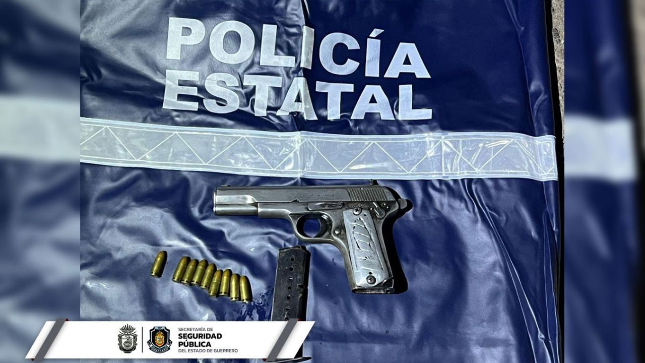 Chilpancingo, Guerrero, 14 de septiembre de 2023.- Personal de la Policía Estatal detuvo a dos hombres, a quienes se les aseguró un arma de fuego, ello durante las acciones de vigilancia en el municipio de Tlapa.