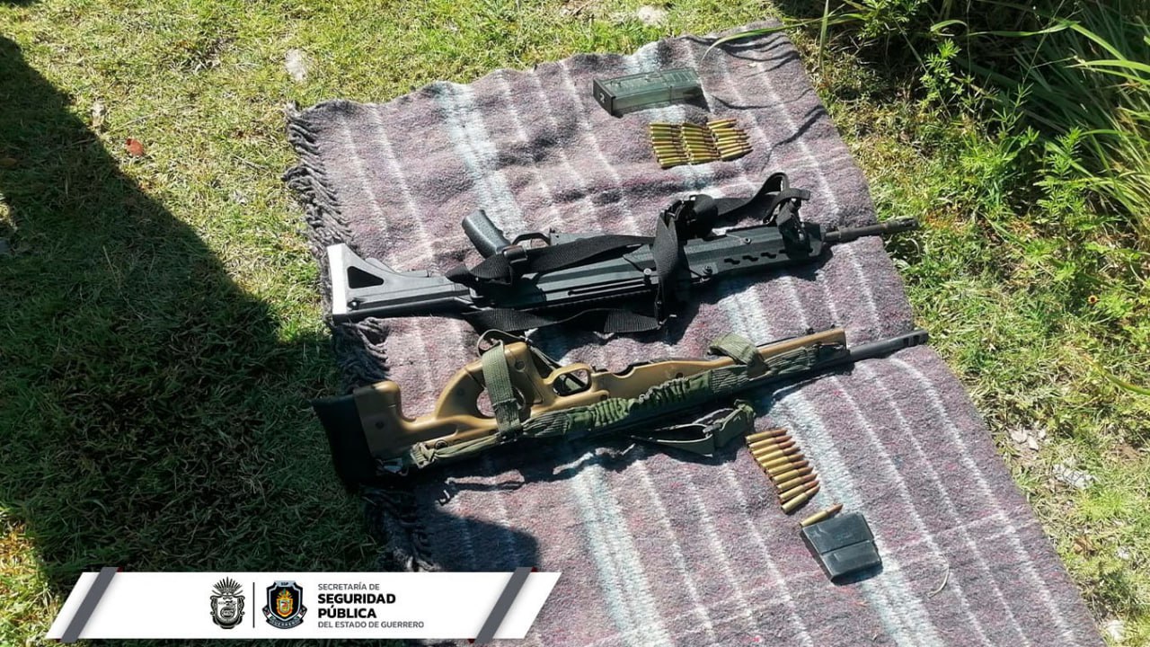 En un segundo hecho, la Policía Estatal en coordinación con personal de la Secretaría de la Defensa Nacional aseguraron a orillas de la localidad de Chichihualco: dos armas largas; dos cargadores; 40 cartuchos útiles.