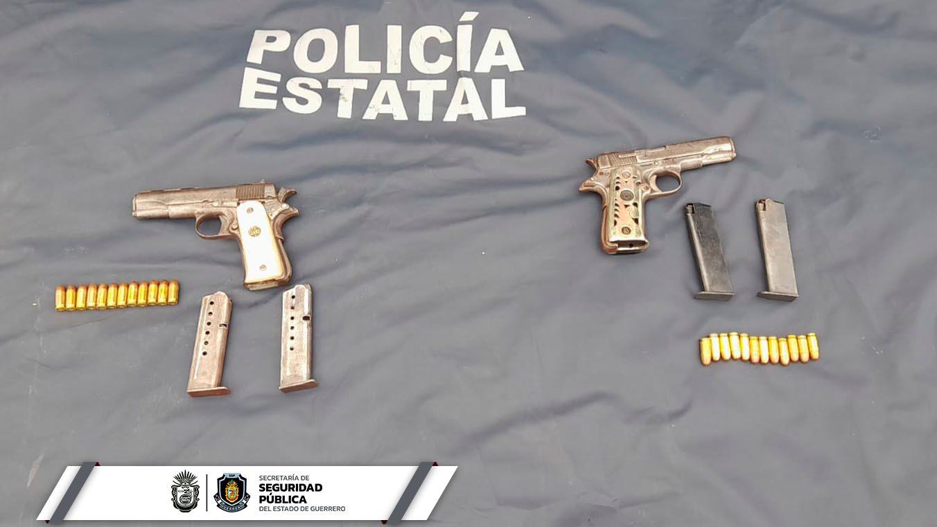 Chilpancingo, Guerrero, 19 de octubre de 2023.- Como resultado de patrullajes de seguridad en el municipio de Ometepec, personal de la Policía Estatal detuvo a dos personas en posesión de dos armas de fuego.