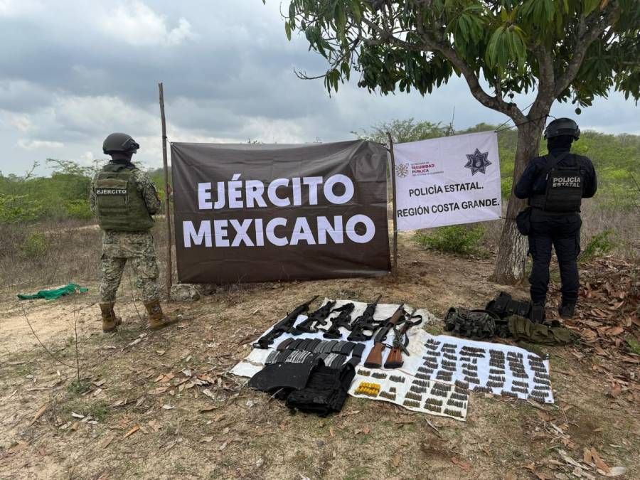 Aseguran fuerzas de seguridad estatales y federales armamento en el municipio de La Unión
