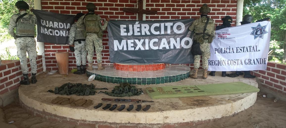 Autoridades de seguridad Federales y Estatales aseguran armamento en el municipio de Zihuatanejo