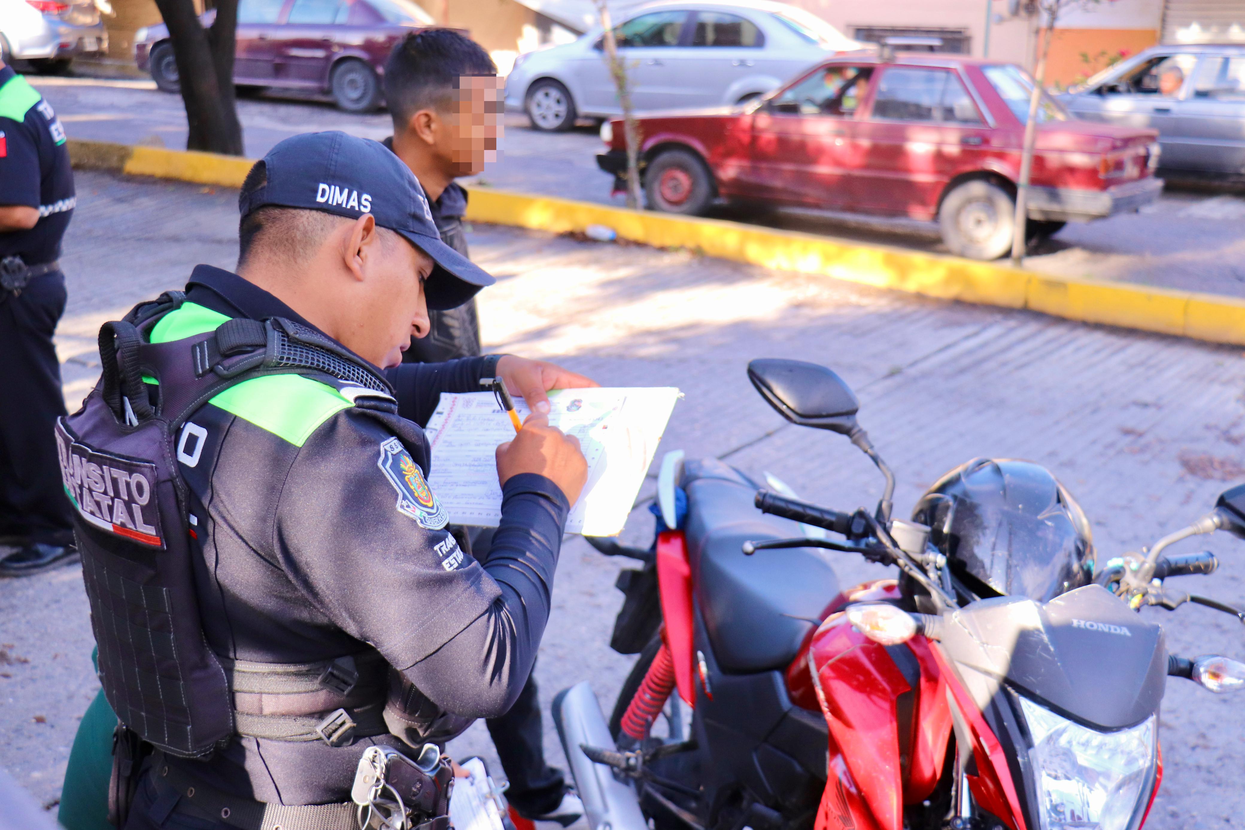 La Dirección General de Tránsito Estatal informa las sanciones a las que se pueden hacer acreedores las personas que no cumplan con el reglamento: el no portar casco asciende a una multa de 678.84 pesos; no portar licencia vigente genera una sanción de los mil 357.68 a los 2 mil 262.80 pesos; mientras que circular sin placas alcanza una multa de 2 mil 262.90 a los 5 mil 657 pesos.