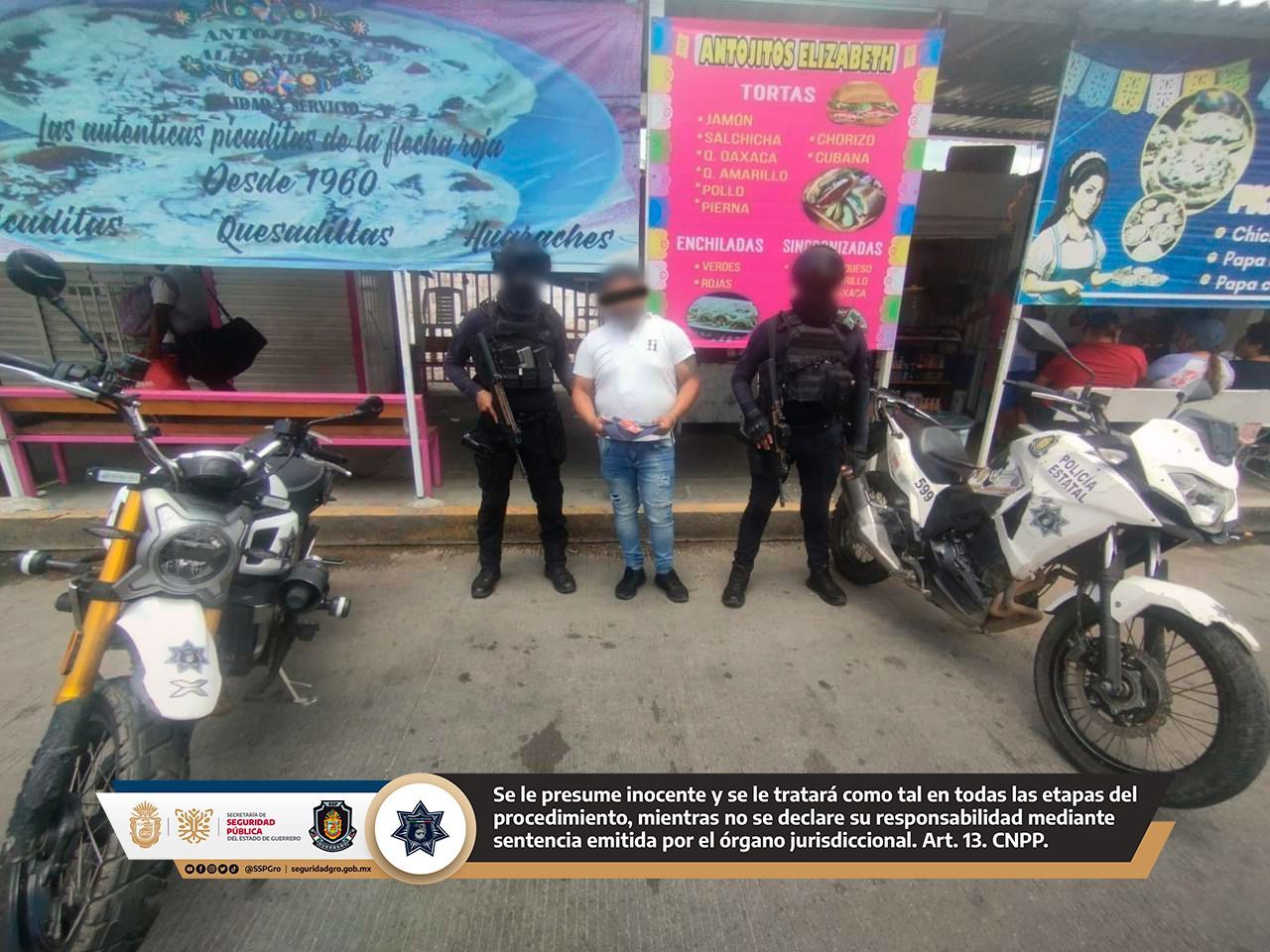El hecho se registró tras una solicitud de apoyo en una sucursal bancaria ubicada en la colonia Centro, sobre la calle Diego Hurtado de Mendoza, en Acapulco, donde los policías estatales localizaron al individuo reportado.