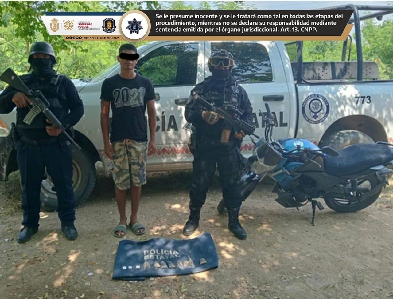 Policía Estatal detuvo a un masculino asegurándole ocho bolsitas con hierba verde y seca con características propias de la marihuana, en la colonia Jardín municipio de Acapulco