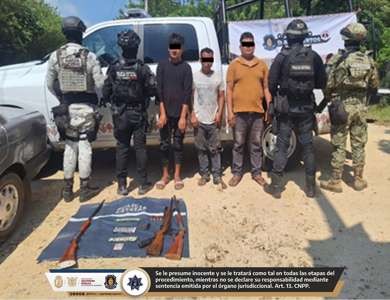 Como resultado del Operativo Interinstitucional Guerrero-Oaxaca 2025, personal de la Policía Estatal, en coordinación con el Ejército Mexicano y la Guardia Nacional, mediante recorridos de seguridad en caminos de terracería, detuvieron a tres sujetos que viajaban en un vehículo en la comunidad de San Martín, municipio de Xochistlahuaca.