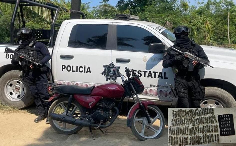 Policía Estatal localizó una motocicleta con droga, en la colonia Lomas de Chapultepec en el municipio de Acapulco.