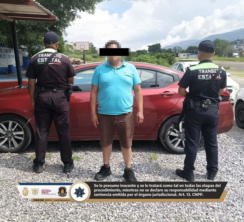 En acciones de seguridad y prevención del delito, la Policía Estatal aseguró a un masculino y un vehículo con reporte de robo en la colonia Balcones de Tepango, municipio de Chilpancingo de los Bravo.