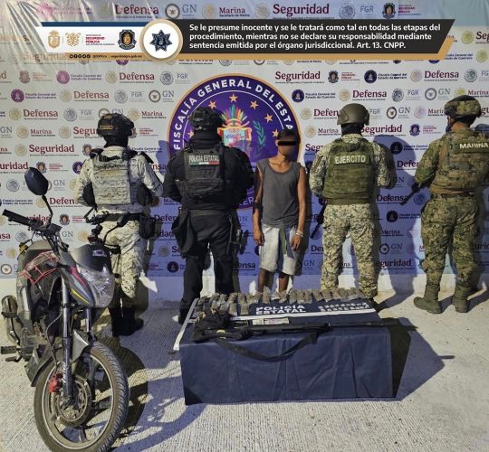Detienen a masculino con presuntas sustancias y aseguran arma y motocicleta en Coyuca de Benítez